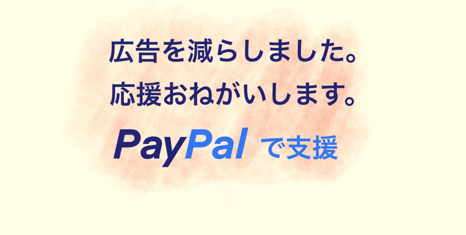 このサイトを、続けさせてください。 最近、広告を減らして「読みやすさ」 … 続きを読む PayPalで応援する(送金)